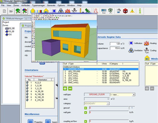 TRNBuild is an interface for creating and editing all of the non-geometry information required by the TRNSYS Building Model. TRNBuild allows the user extensive flexibility in editing wall and layer material properties, creating ventilation and infiltration profiles, adding gains, defining radiant ceilings and floors, and positioning occupants for comfort calculations.